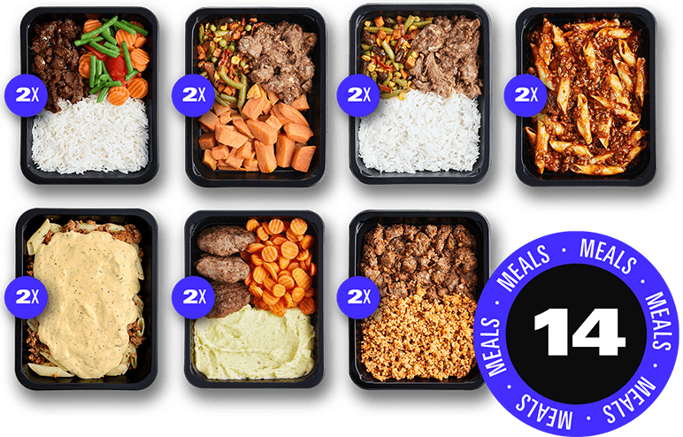 Probeer ons maaltijdpakket met pulled beef en gehakt van grasgevoerde runderen. Rijk aan eiwitten en ideaal voor elk dieet. Gemiddeld 40g eiwitten per maaltijd.